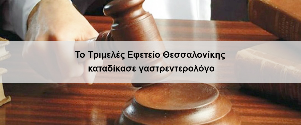 Αποκλειστική ευθύνη για τον θάνατο ενός 32χρονου ασθενή επιρρίπτει το Τριμελές Εφετείο Θεσσαλονίκης σε γαστρεντερολόγο. Συγκεκριμένα η απόφαση του δικαστηρίου καταδικάζει τον γιατρό με ποινή φυλάκισης. Ο ασθενής εισήλθε στο νοσοκομείο...
