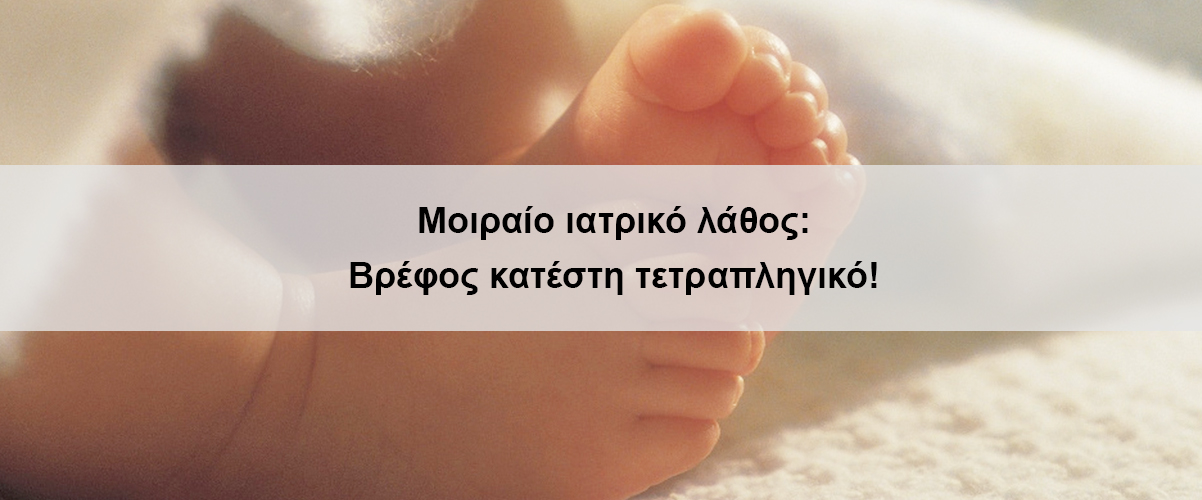 Ο ασθενής κατέστει ανάπηρος εφ’ όρου ζωής Τα ελληνικά δικαστήρια εκδίκασαν αποζημίωση που ξεπερνά τις 900.000 χιλιάδες ευρώ, και ενδέχεται να πολλαπλασιαστεί τα επόμενα χρόνια,σε ιδιωτική κλινική και γιατρό για ιατρικό...