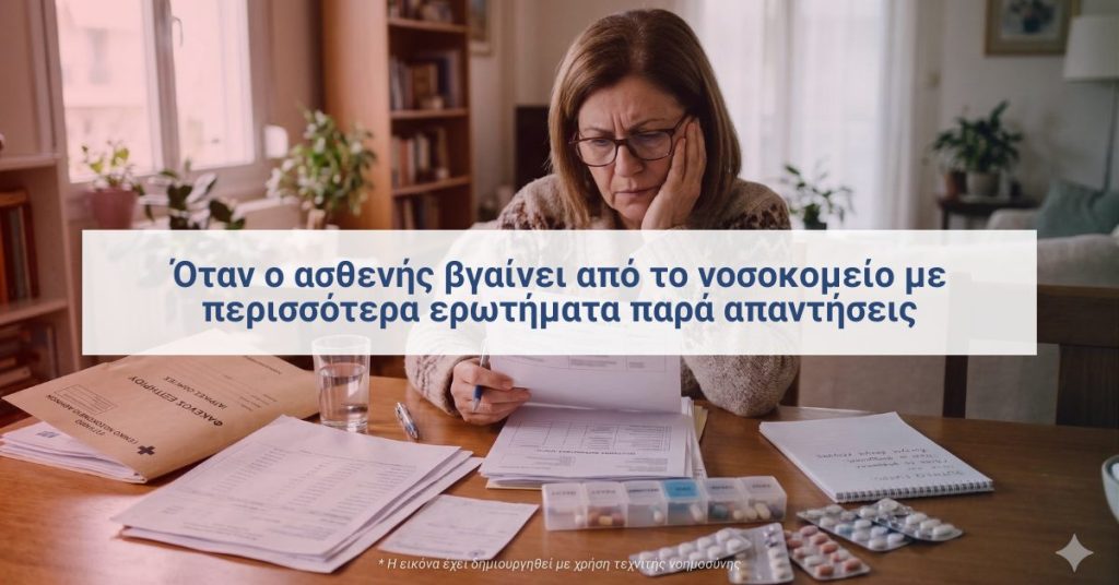 Το εξιτήριο υποτίθεται ότι κλείνει έναν κύκλο. Στην πράξη, για πολλούς ασθενείς ανοίγει έναν νέο: τι ακριβώς είχα; γιατί άλλαξε η αγωγή; τι θεωρείται φυσιολογικό μετά την επέμβαση ή τη νοσηλεία; τι πρέπει να με ανησυχήσει; τι έδειξαν τελικά οι εξετάσεις; Αυτές οι απορίες δεν είναι υπερβολή. Είναι συχνά το αποτέλεσμα βιαστικής ενημέρωσης, πολλών διαφορετικών γιατρών, πίεσης χρόνου και αποσπασματικών οδηγιών. Το Υπουργείο Υγείας αναγνωρίζει θεσμικά τα δικαιώματα των ληπτών υπηρεσιών υγείας, ενώ σε ευρωπαϊκό επίπεδο το δικαίωμα πρόσβασης στα προσωπικά δεδομένα περιλαμβάνει και τα δεδομένα υγείας.
